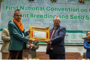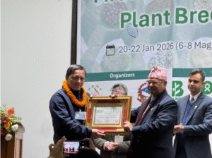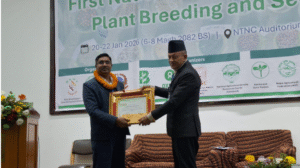 सम्मेलनका अवसरमा उत्कृष्ट बाली प्रजनक पुरस्कार नार्कका वरिष्ठ वैज्ञानिक डा. राजेन्द्र दराईलाई प्रदान गरिएको छ।