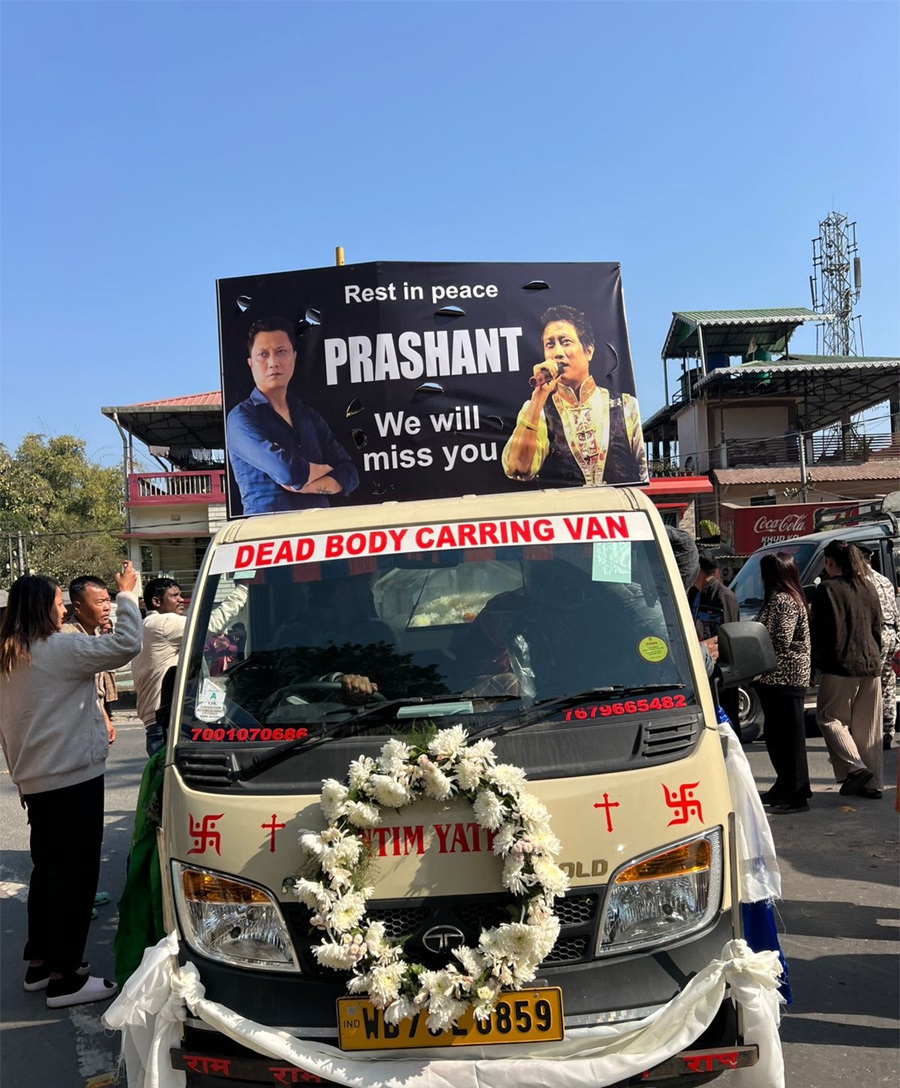 शव राखिएको गाडीमा प्रशंसकहरूले पुष्पगुच्छा अर्पण गर्दै श्रद्धासुमन व्यक्त गरिरहेका छन्। “प्रशान्त अमर रहून्” भन्ने नारासहित भावुक प्रशंसकहरूको आँसु र मौनताले दार्जिलिङ शोकमय बनेको छ।