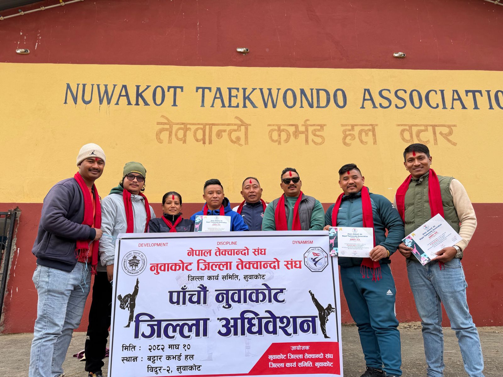 नुवाकोट तेक्वान्दो संघको पाँचौँ अधिवेशनले संघको नेतृत्व नयाँ टिमलाई सुम्पिएको छ। लामो समयदेखि संगठन सुदृढीकरण र खेलाडी उत्पादनमा सक्रिय रहँदै आएको संघले यस अधिवेशनमार्फत आगामी कार्यदिशा स्पष्ट गर्ने संकेत दिएको छ।