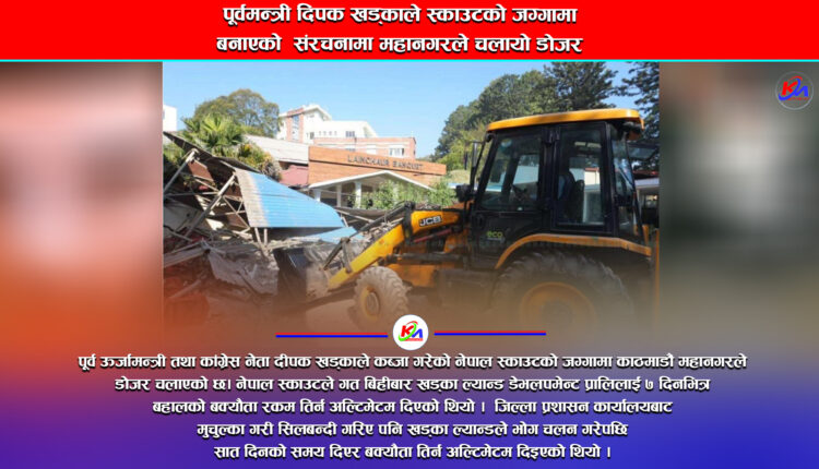 पूर्वमन्त्री दिपक खड्काले स्काउटको जग्गामा बनाएको संरचनामा महानगरले चलायो डोजर
