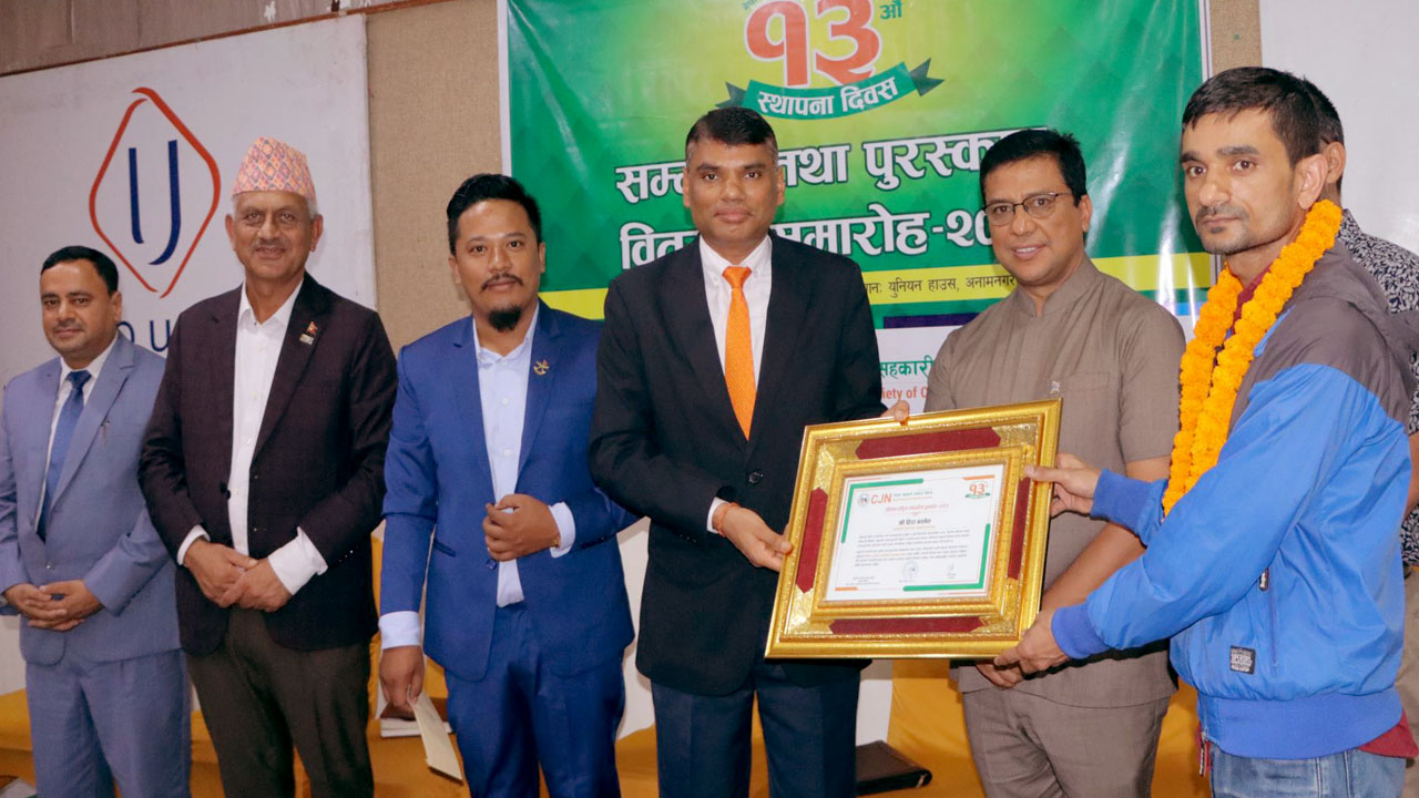 सिजेएनको १३ औं स्थापना दिवसको अवसरमा आज आयोजित एक औपचारिक कार्यक्रमका बीच भूमि ब्यवस्था, सहकारी तथा गरिवी निवारण मन्त्रालयका सचिव गोकर्णमणि दुवाडीले उक्त पुरस्कार प्रदान गरेका हुन् ।