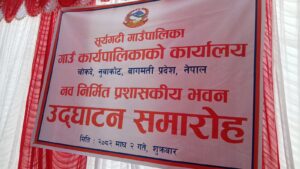 नुवाकोट — सूर्यगढी गाउँपालिका गाउँ कार्यपालिकाको कार्यालयका लागि निर्माण गरिएको *नव–निर्मित प्रशासकीय भवनको उद्घाटन समारोह* चोकदे, नुवाकोटमा भव्य रूपमा सम्पन्न भएको छ।